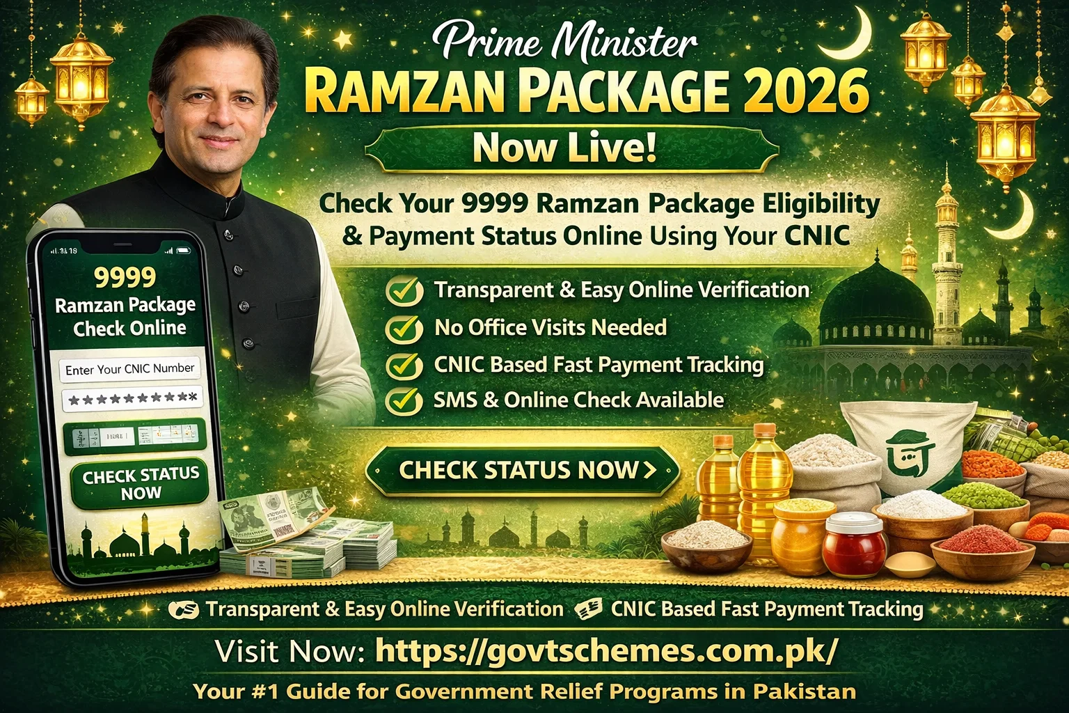 9999 Ramzan Package Check Online Payment Status portal under the Prime Minister Ramzan Package 2026 has launched relief verification simple and accessible for every Pakistani family. Citizens can Ramzan Package online check, 9999 ramzan package check online cnic pakistan and receive ramzan package payments without unnecessary travel or paperwork.