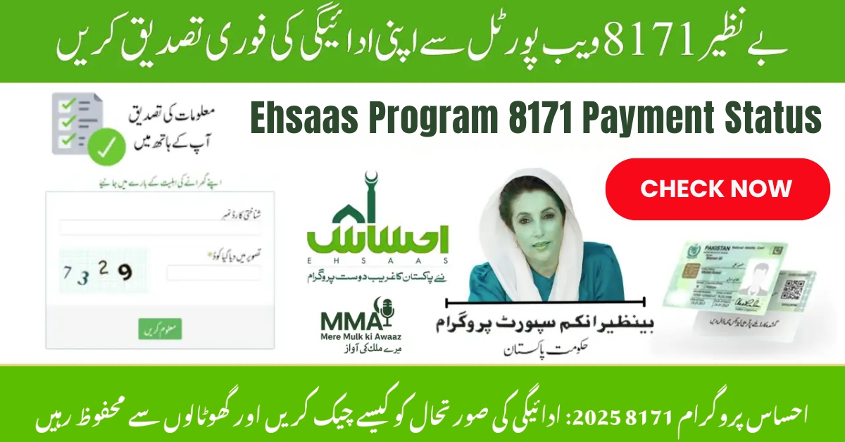 To check your payment, visit the official 8171 web portal, enter your CNIC number, and type the captcha code. You’ll instantly see your Ehsaas Program 8171 payment details.